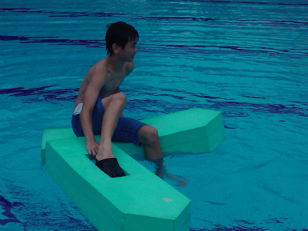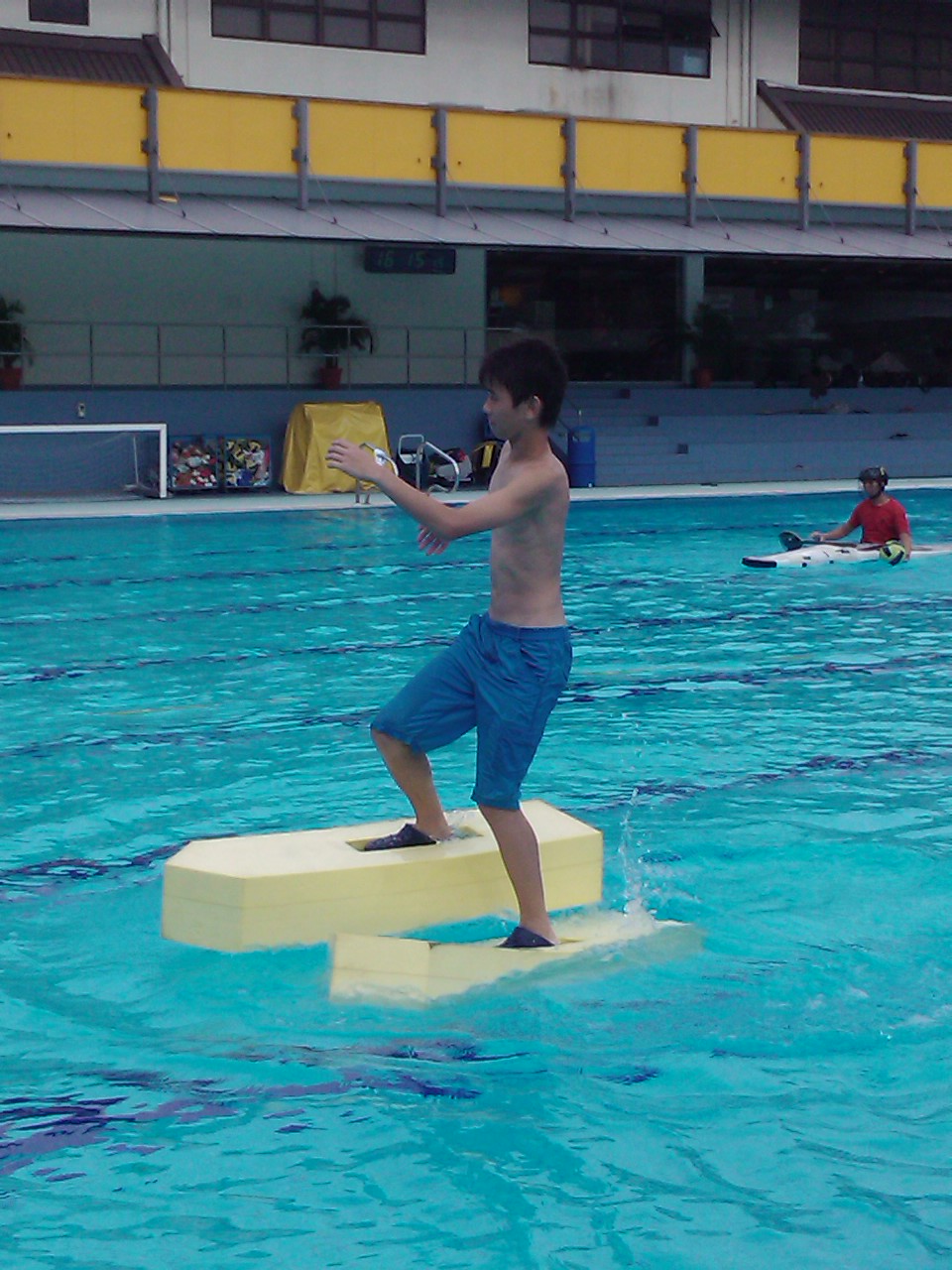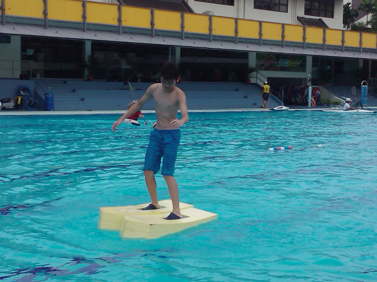 It was a day of fun and laughter for the boys from 2E3, Chow Siang Yong and Stanley Sia, who were selected by Mr. Roland Tan to participate in this year's Walk-on-Water competition. Together with Clinston Wang Kuan Jie, the boys will be competing on the 27th of June, during the 2010 Singapore International Water Festival, which will be held at Marina Barrage.The boys put in a lot of effort to learn how to apply Physics principles to the sport, like squatting down to keep their centres of gravity low when they are falling, and to avoid wasting energy in lifting the water shoes out of the water due to the surface tension of the liquid, but to slide the shoes on the water surface instead. It was a very innovative way for the students to learn about science in the wet way!